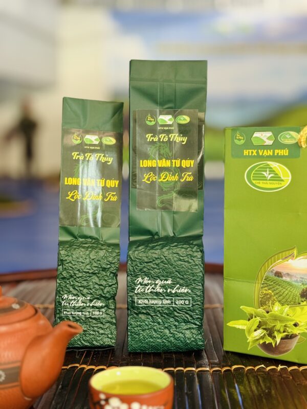 Long Vân Tứ Quý Lộc Đỉnh Trà là dòng trà tôm nõn Thái Nguyên thượng hạng quý hiếm, được gìn giữ và phát triển tại mảnh đất Thái Nguyên bởi HTX Trà và Du lịch Sinh thái Vạn Phú. Sản phẩm này thuộc thương hiệu Trà Tô Thủy, nổi tiếng chuyên về các dòng trà đặc sản, sản lượng giới hạn.